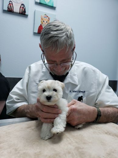 Dr. Schmidt at Johnson Ranch Animal Clinic has been our long time Veterinarian and has been practicing for 35+ years. He pays special attention to detail making sure every pup is happy and healthy!